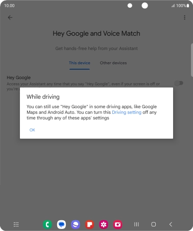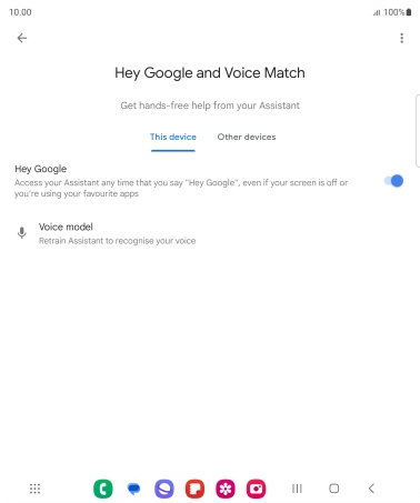 Press the indicator next to "Hey Google" to turn the function on or off.