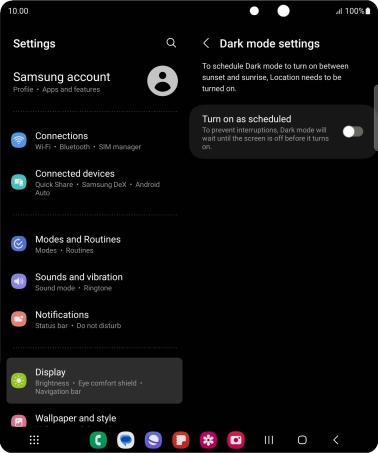 If you select Custom schedule, follow the instructions on the screen to select the required period of time for dark mode.
