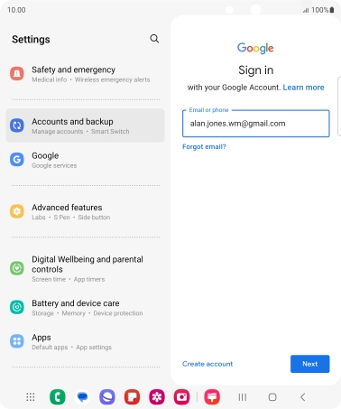 If you don't have a Google account, press Create account and follow the instructions on the screen to create an account.