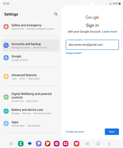 If you don't have a Google account, press Create account and follow the instructions on the screen to create an account.