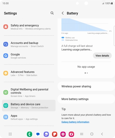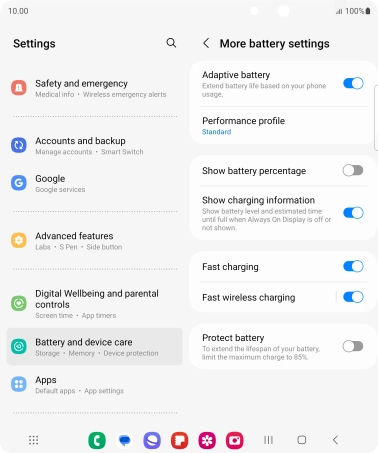 Press the indicator next to "Protect battery" to turn the function on or off.