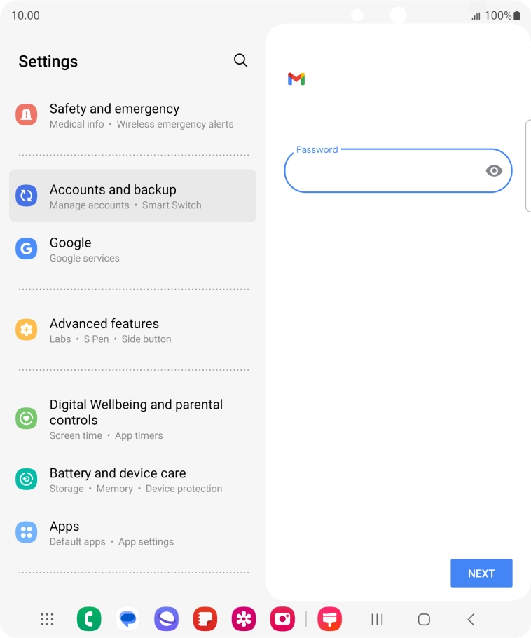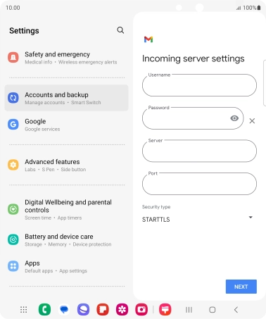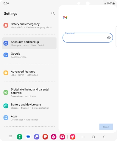 Press the field below "Password" and key in the password for your email account.