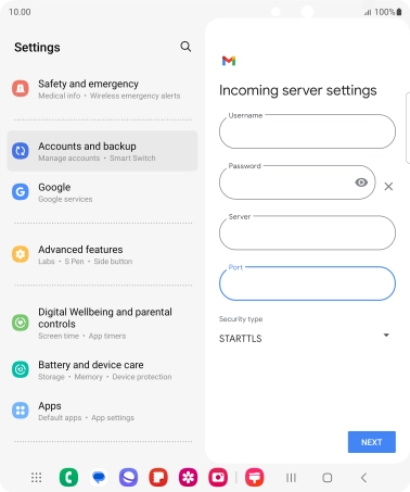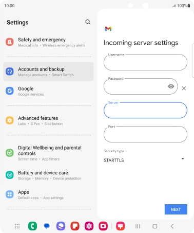 Press the field below "Server" and key in the name of your email provider's incoming server.