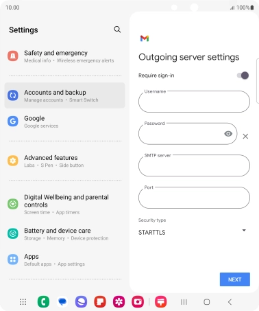 Press the field below "Username" and key in the username for your email the email provider's outgoing server.