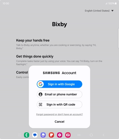 Press Email or phone number and follow the instructions on the screen to log on to your Samsung account.