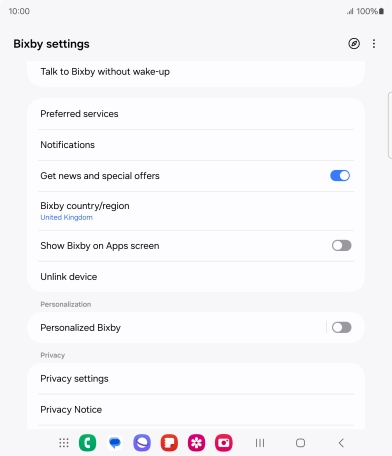Press Bixby country/region and follow the instructions on the screen to select the required country or region.