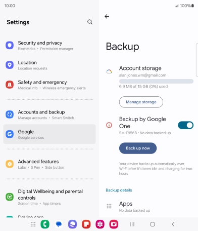 Press the indicator next to "Backup by Google one" to turn on the function.