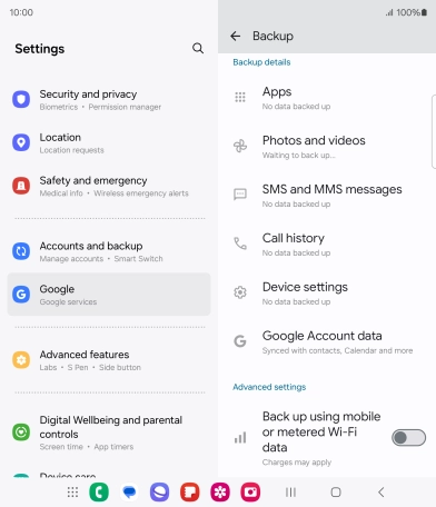 Press the indicator next to "Back up using mobile or metered Wi-Fi data" to turn the function on or off.