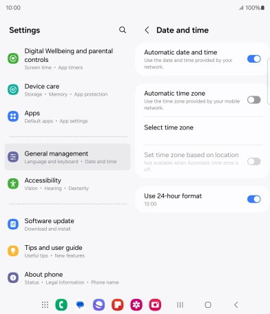 Press the indicator next to "Automatic date and time" to turn on the function.