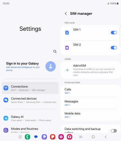 Press the required SIM.