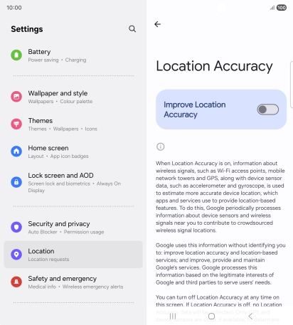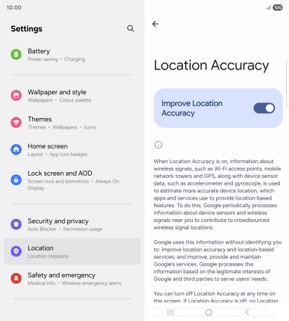 If you press the indicator next to "Improve Location Accuracy" to turn off the function, your phone can find your exact position using the GPS satellites but it may take longer as there is no access to supplementary information from the mobile network or nearby Wi-Fi networks.