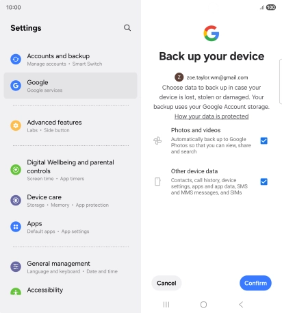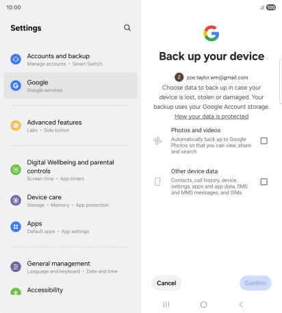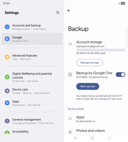 Press the indicator next to "Backup by Google One" to turn on the function.