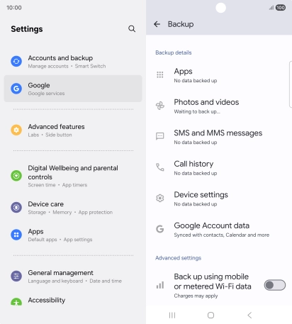 Press the indicator next to "Back up using mobile or metered Wi-Fi data" to turn the function on or off.