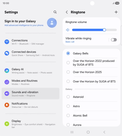 To use a different ring tone than the default ones, press the add ring tone icon and follow the instructions on the screen to select the required ring tone.