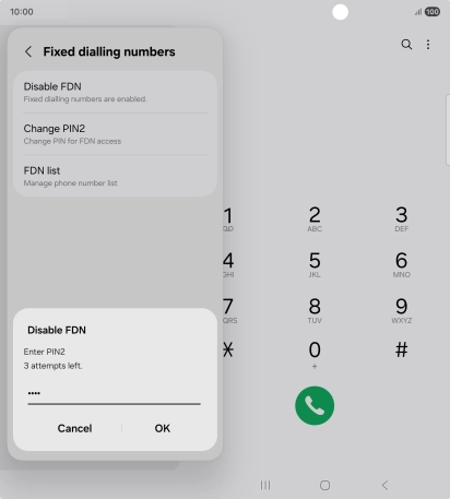 Key in your PIN2 and press OK. The default PIN2 is 1111.
