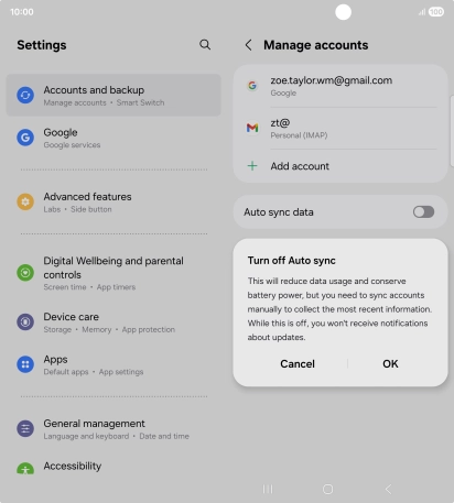 Press the indicator next to "Auto sync data" to turn the function on or off.