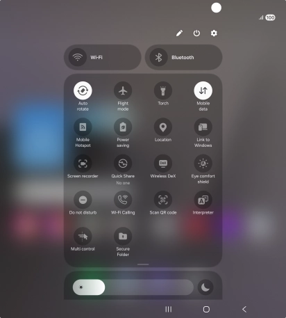To use Galaxy AI to translate a conversation, slide your finger downwards starting from the top right side of the screen.