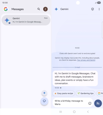 Press and hold the text suggestion from Gemini. Follow the instructions on the screen to use the text suggestion.