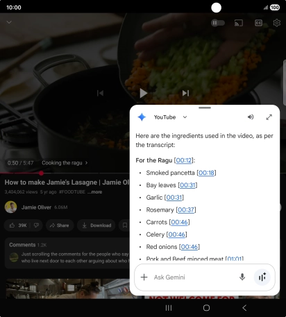 Using Gemini, you can ask questions about the content of a YouTube video.