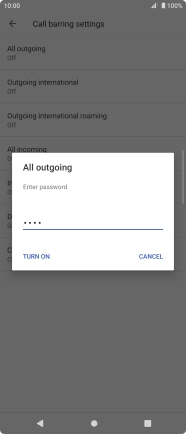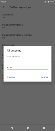 Key in your barring password and press TURN ON. The default barring password is 1919.