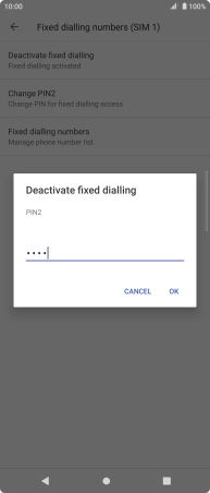 Press Deactivate fixed dialling to turn off fixed dialling.