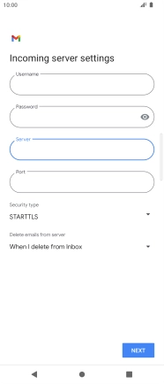 Press the field below "Server" and key in the name of your email provider's incoming server.