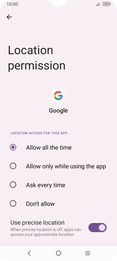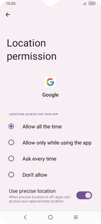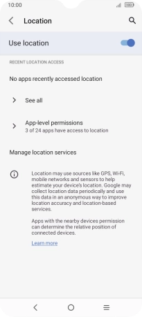 Press the indicator next to "Use location" to turn the function on or off.