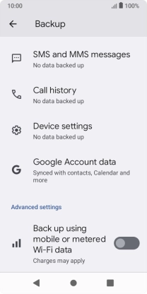 Press the indicator next to "Back up using mobile or metered Wi-Fi data" to turn the function on or off.