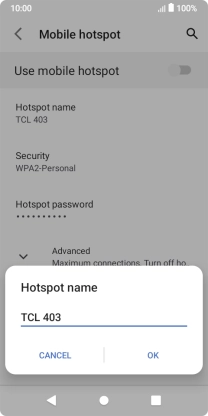 Press Hotspot name and key in the required name for the Wi-Fi hotspot.