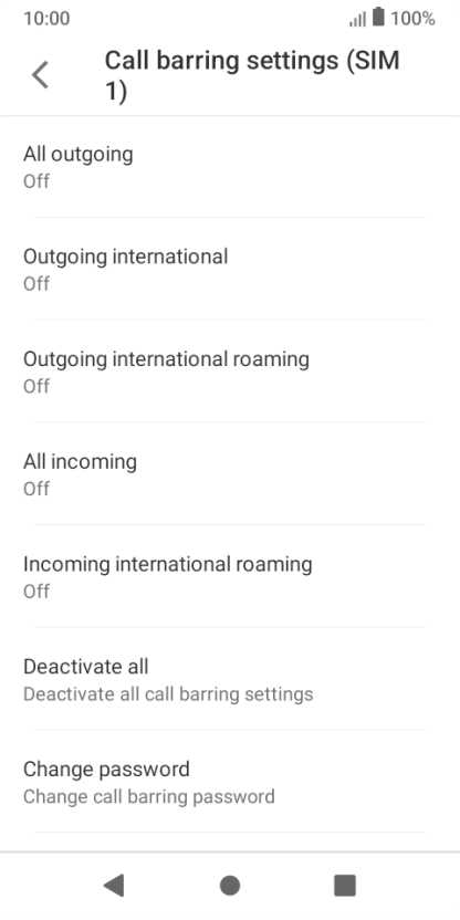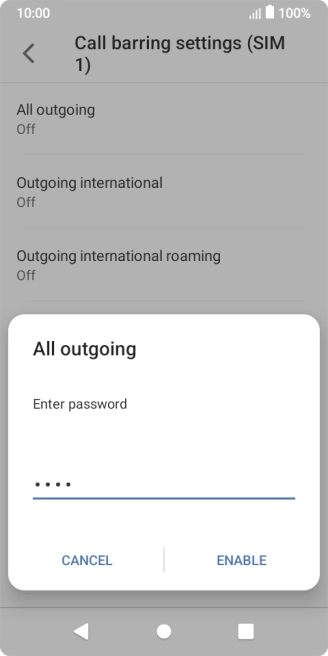 Key in your barring password and press ENABLE. The default barring password is 1919.