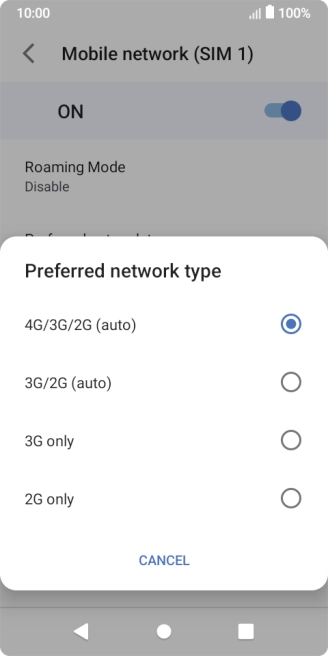 Press Preferred network type.