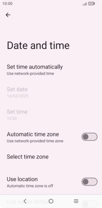 Press the indicator next to "Automatic time zone" to turn on the function.