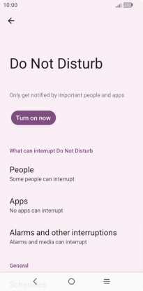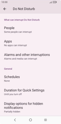 Press Schedules and follow the instructions on the screen to select settings for automatic activation of Do Not Disturb.