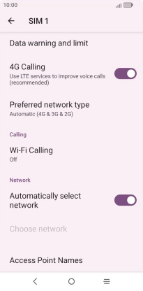 Press the indicator next to "Automatically select network" to turn on the function.