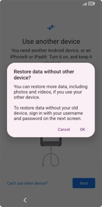 When this screen is displayed, your phone is ready to restore content from a Google One backup.