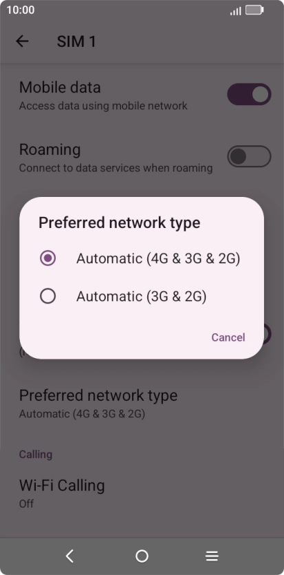 1 Find "Preferred network type"