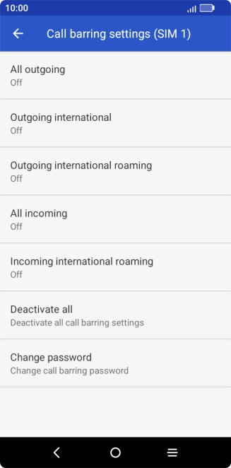 2 Turn call barring on or off