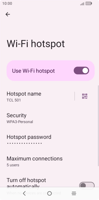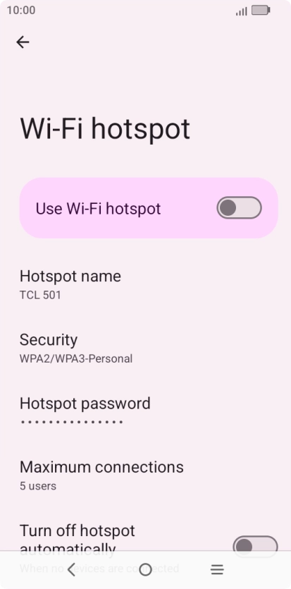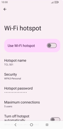 Press the indicator next to "Use Wi-Fi hotspot" to turn on the function.