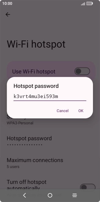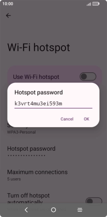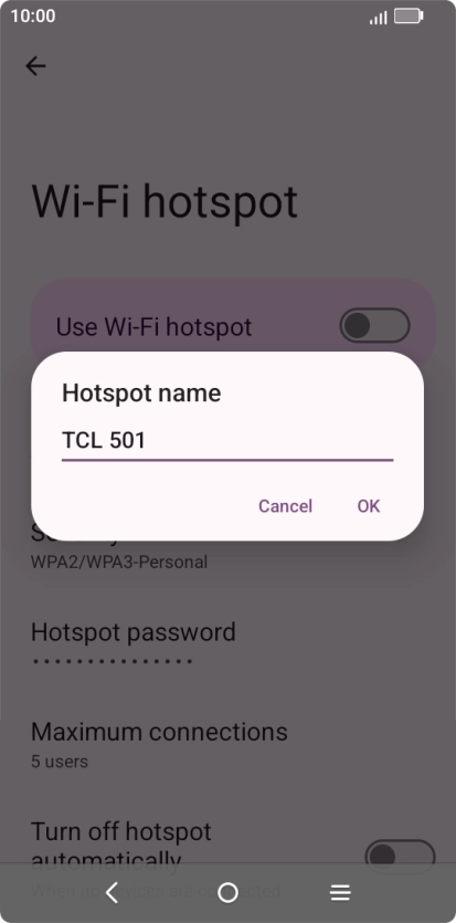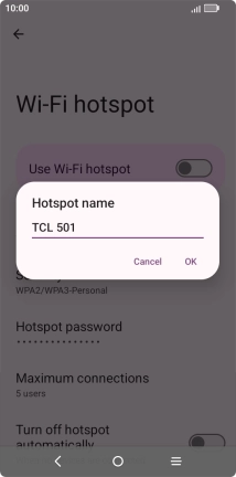 Press Hotspot name and key in the required name for the Wi-Fi hotspot.