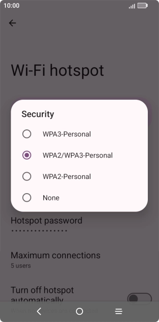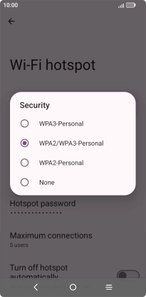 Press WPA3-Personal to password protect your Wi-Fi hotspot.
