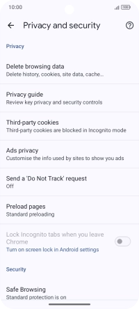 Press Privacy and security.