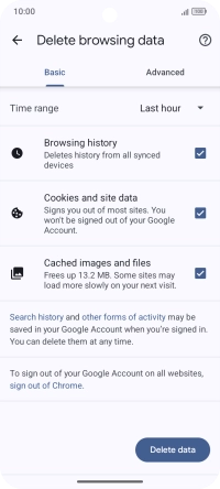 Press Delete browsing data.