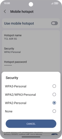 Press WPA3-Personal to password protect your Wi-Fi hotspot.