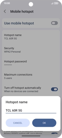 Press Hotspot name and key in the required name for the Wi-Fi hotspot.