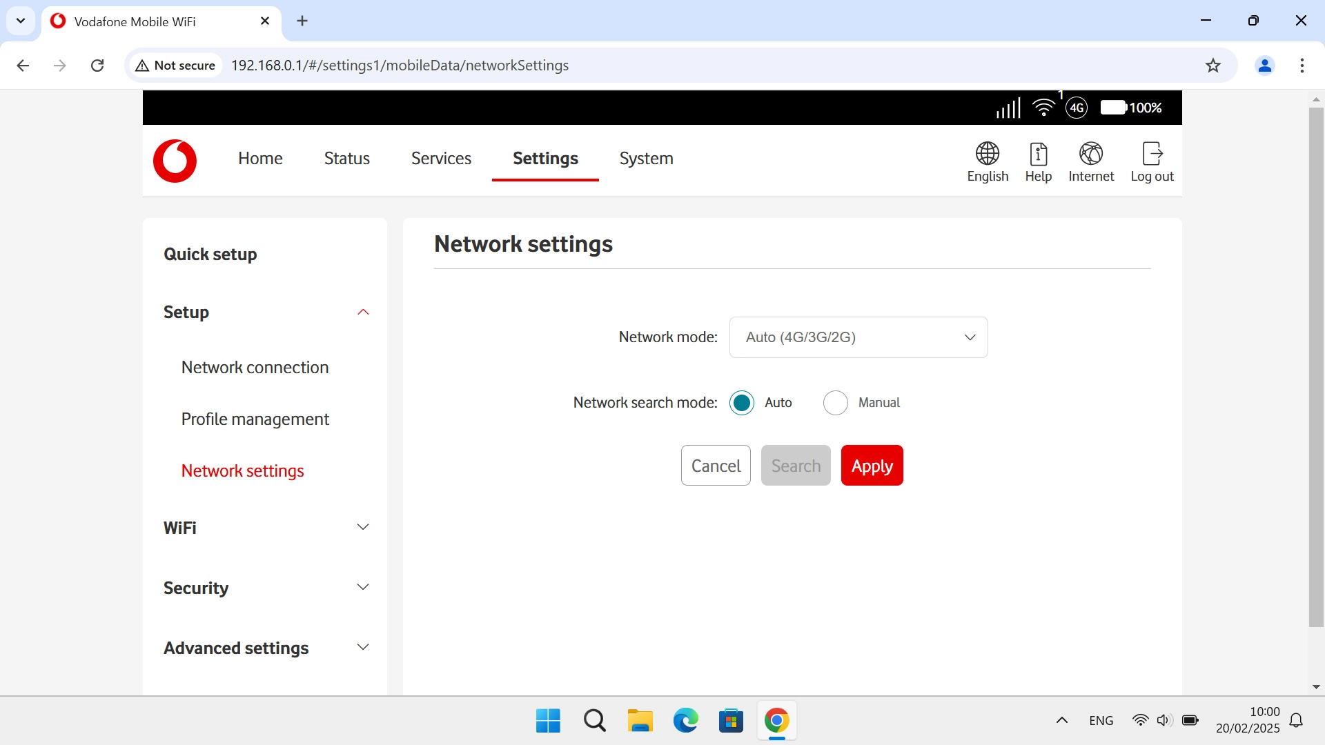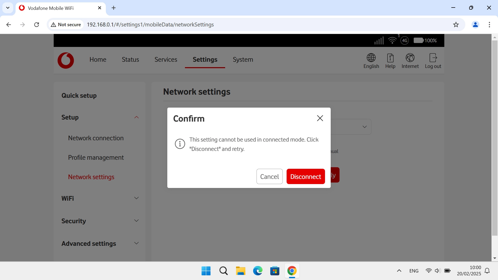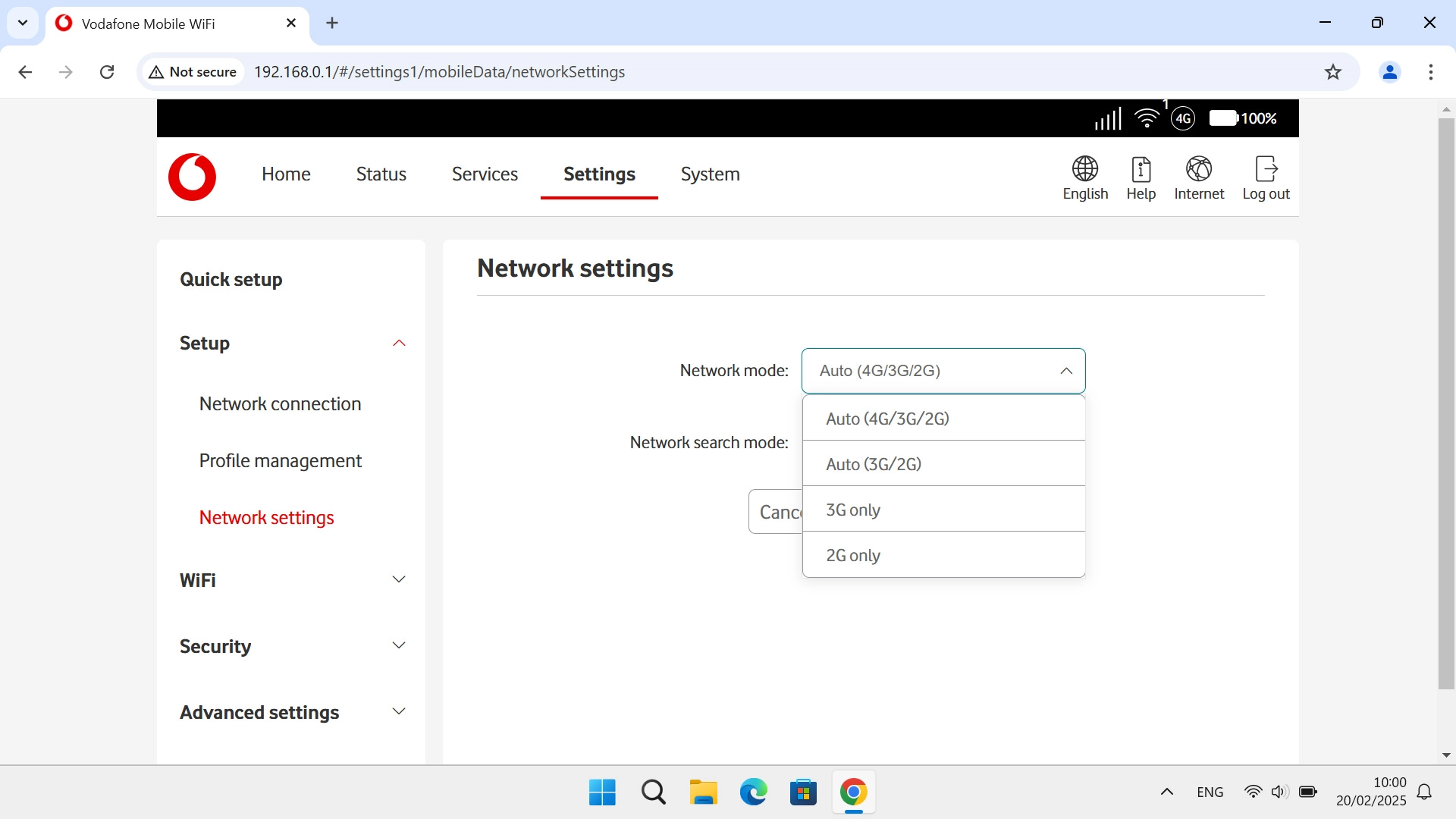 The speed of the internet connection is lower than expected on my Vodafone 4G Mobile Hotspot Windows 11