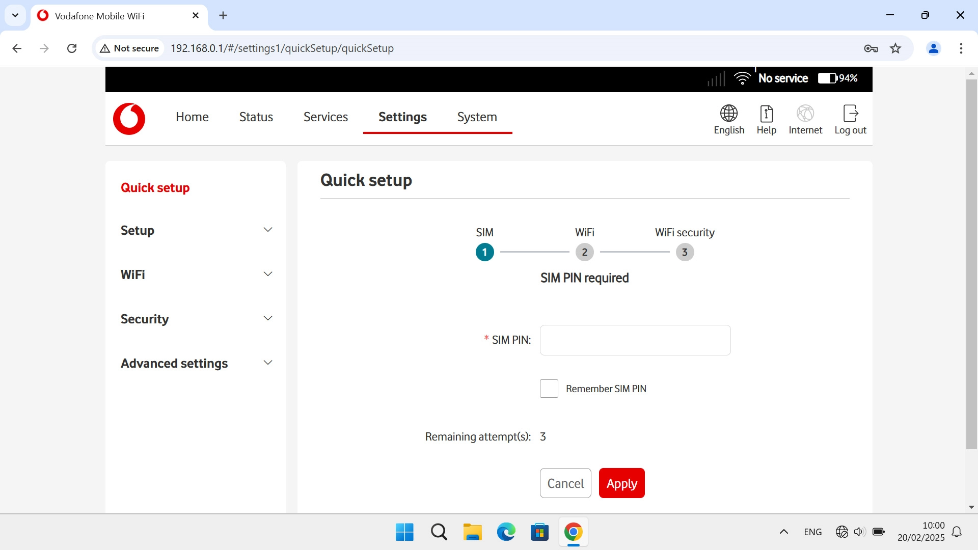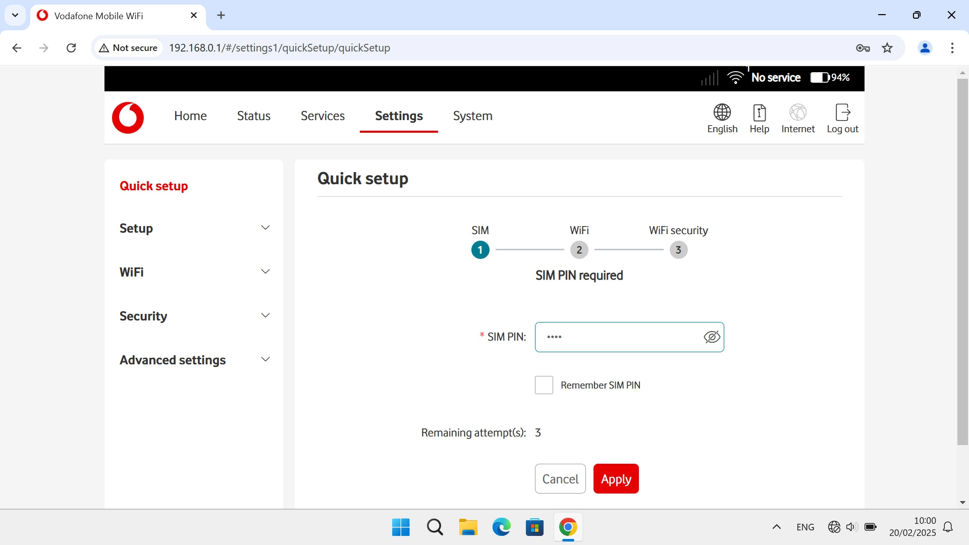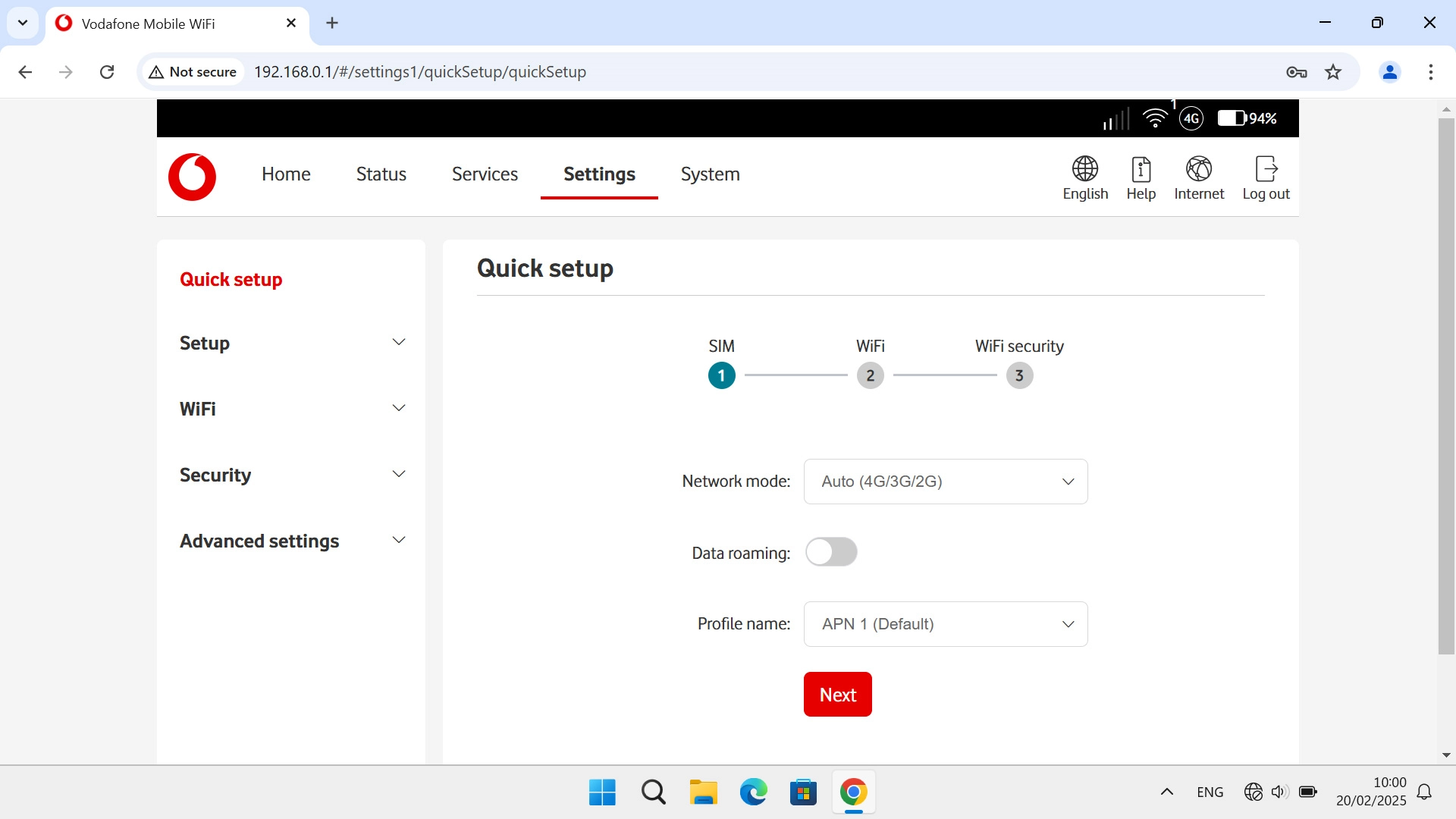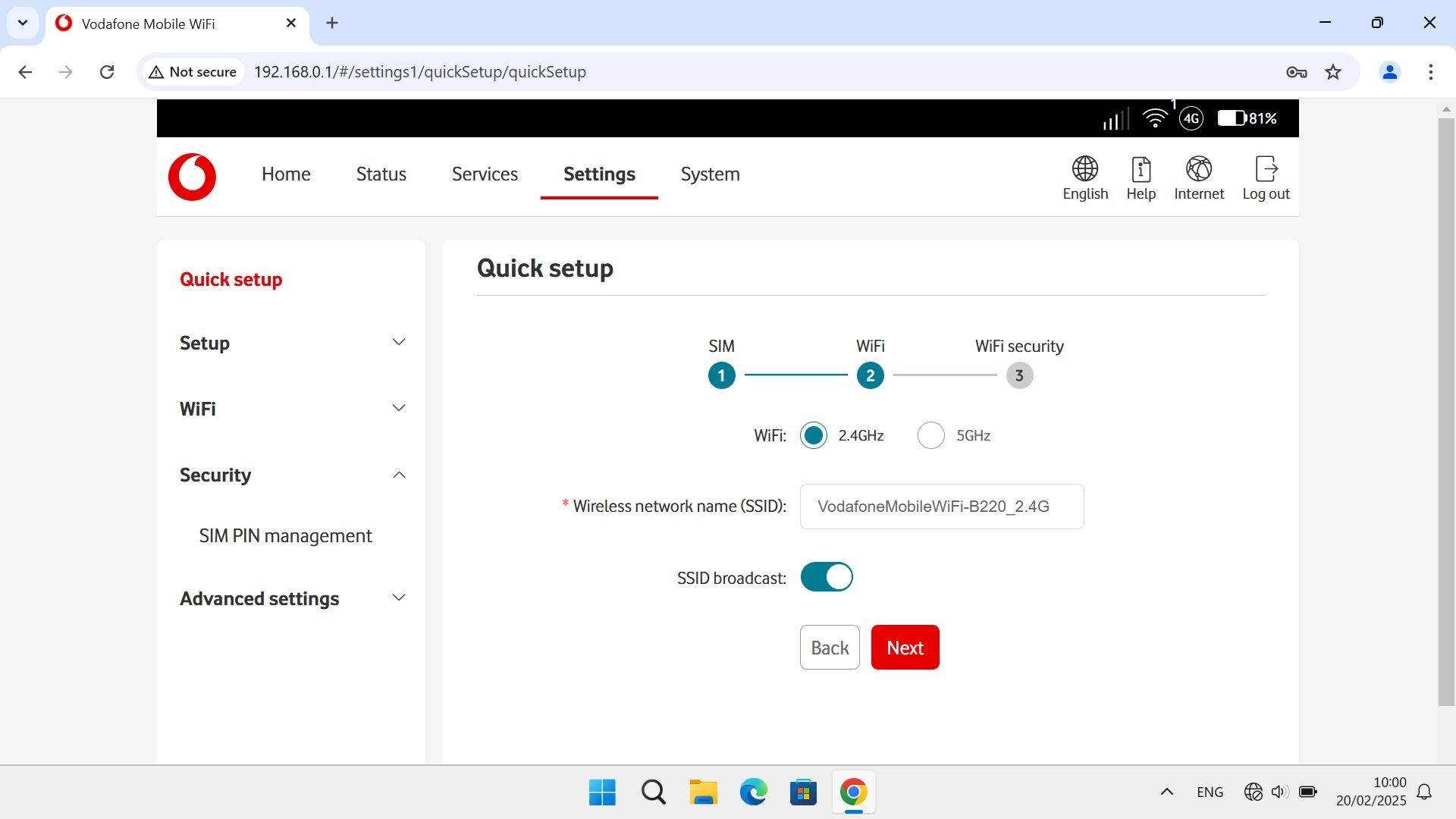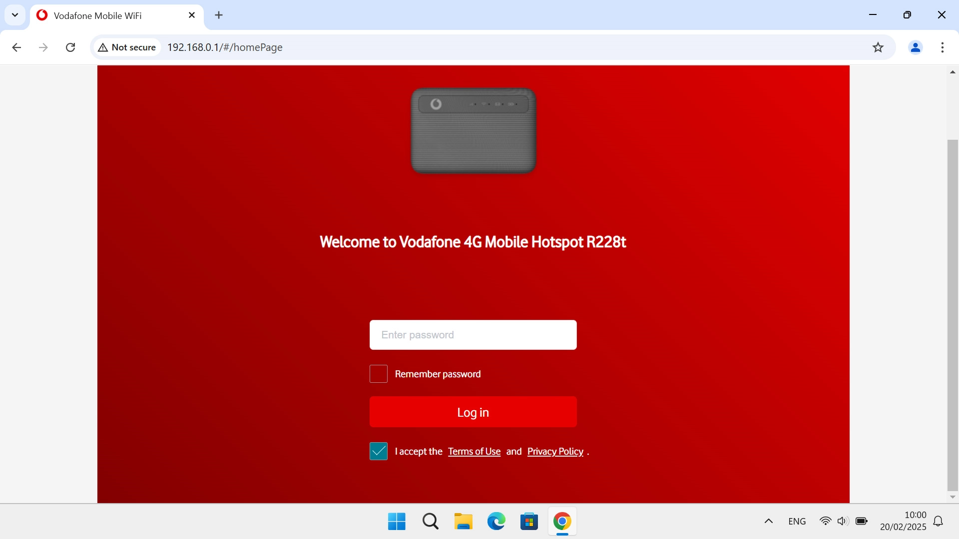 I can't turn on my Vodafone 4G Mobile Hotspot Windows 11