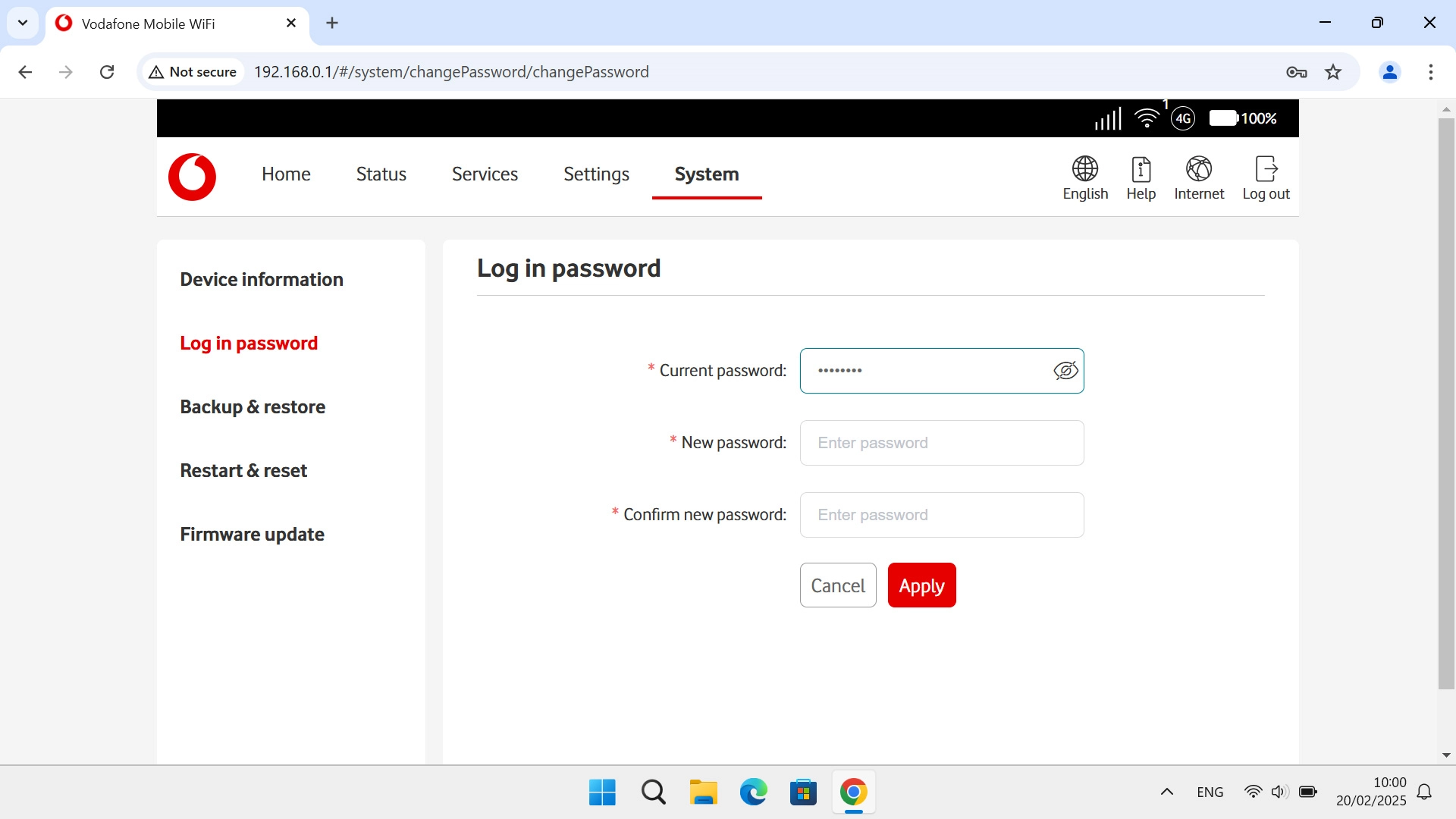 Enter new password for the router web interface