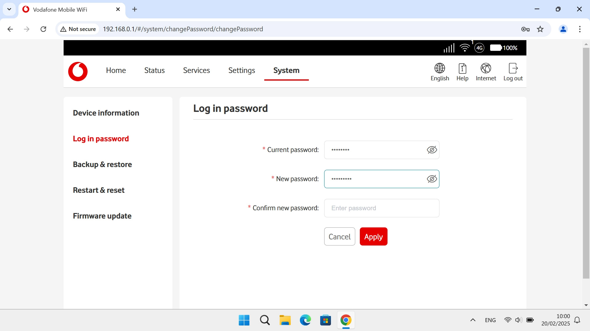 10 Enter new password for the router web interface