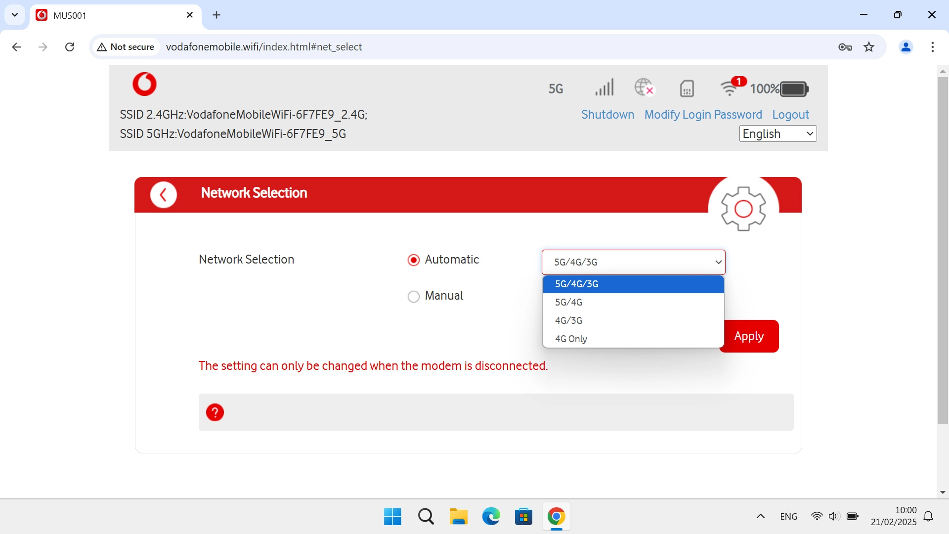 There may be different network modes available depending on where you are. If you set your router to the fastest network mode, it will always find the network with the highest data speed and best signal.