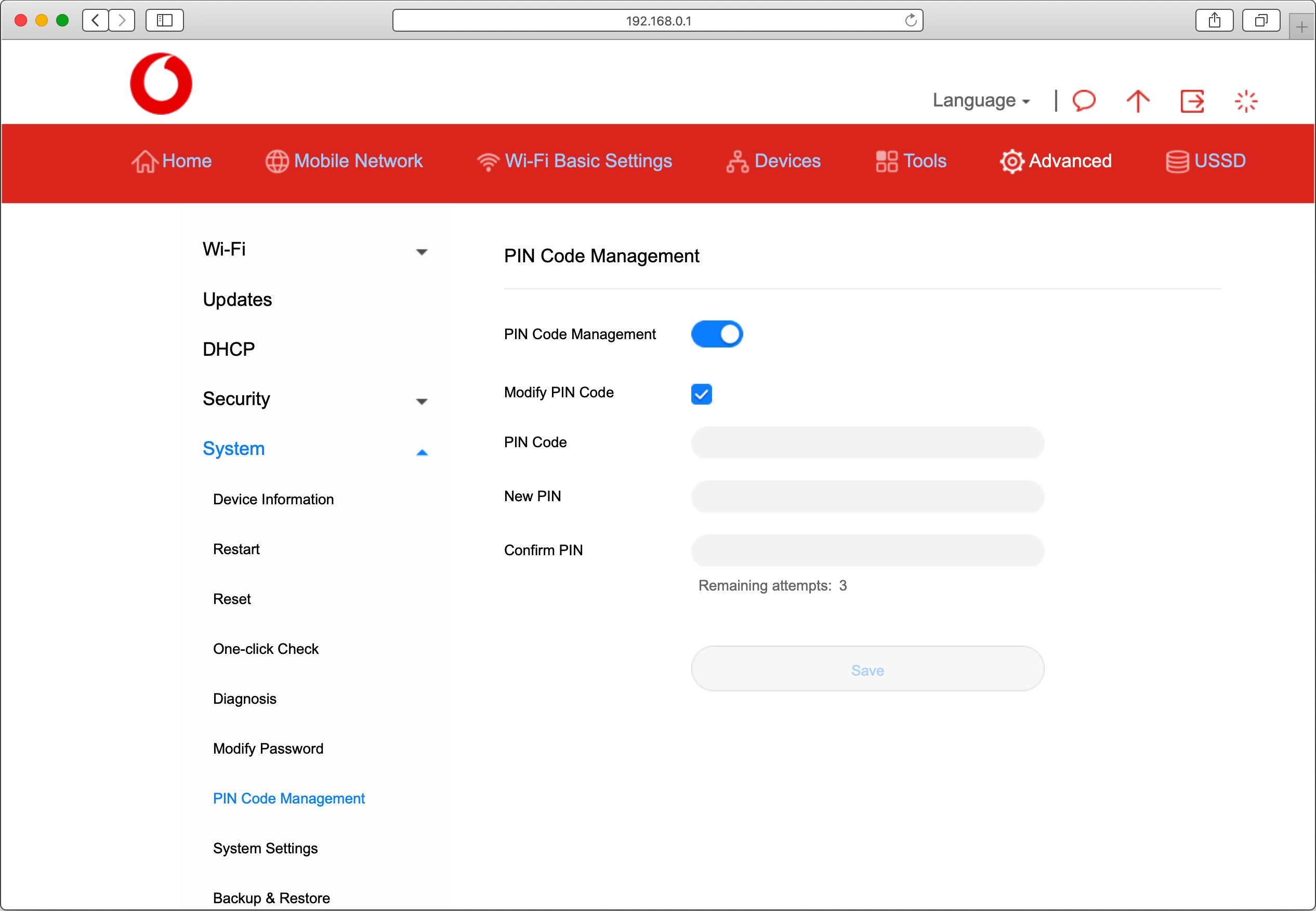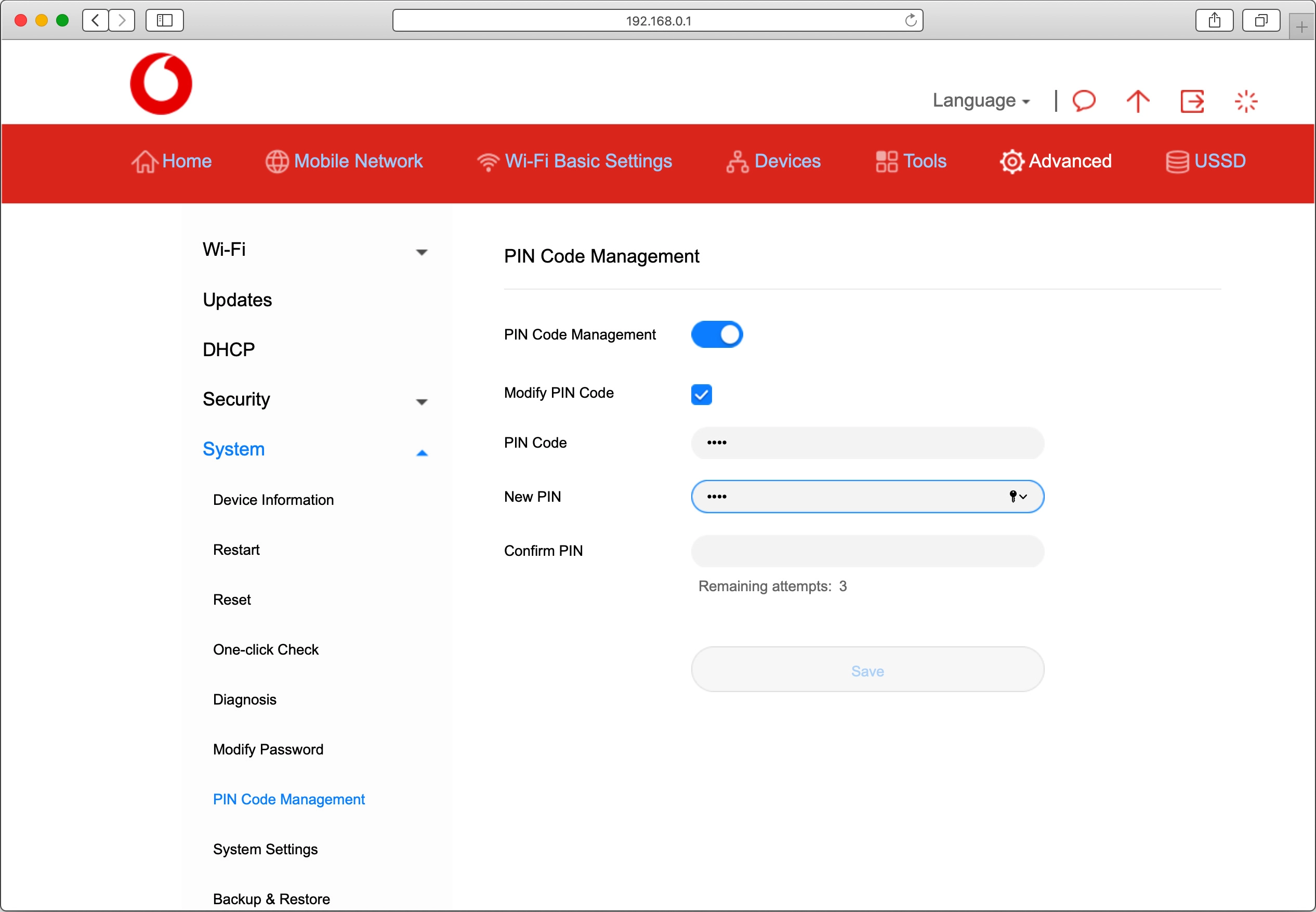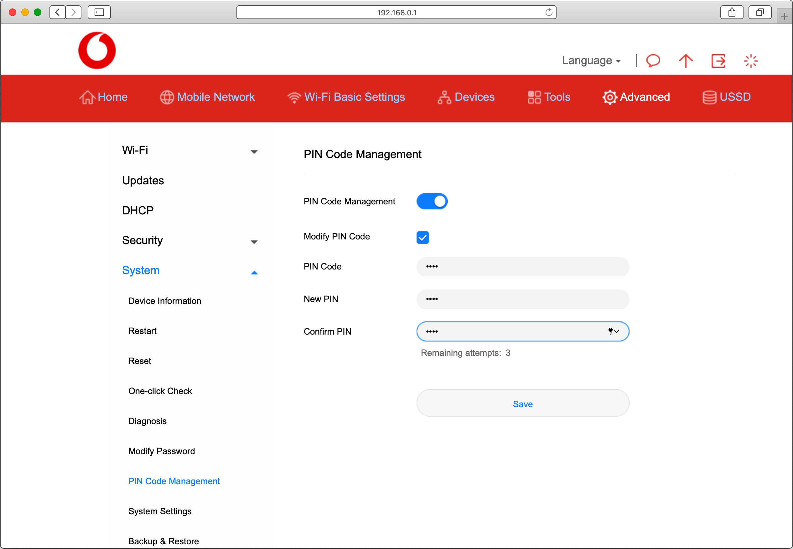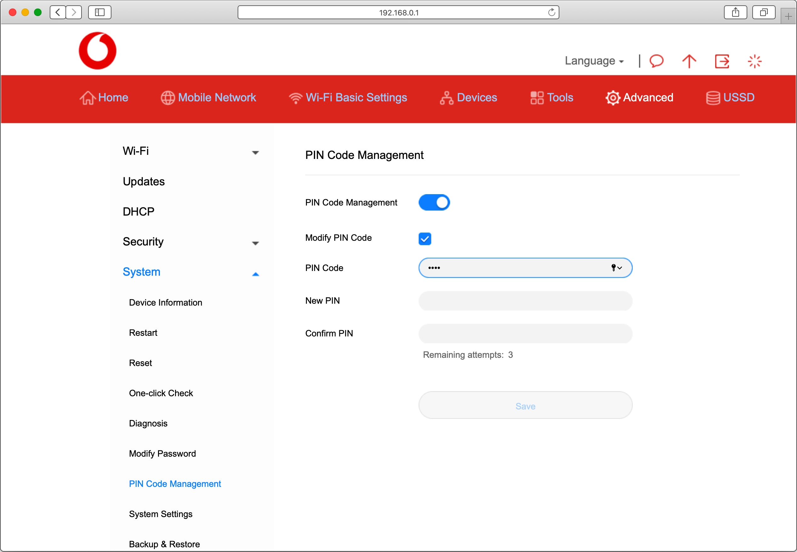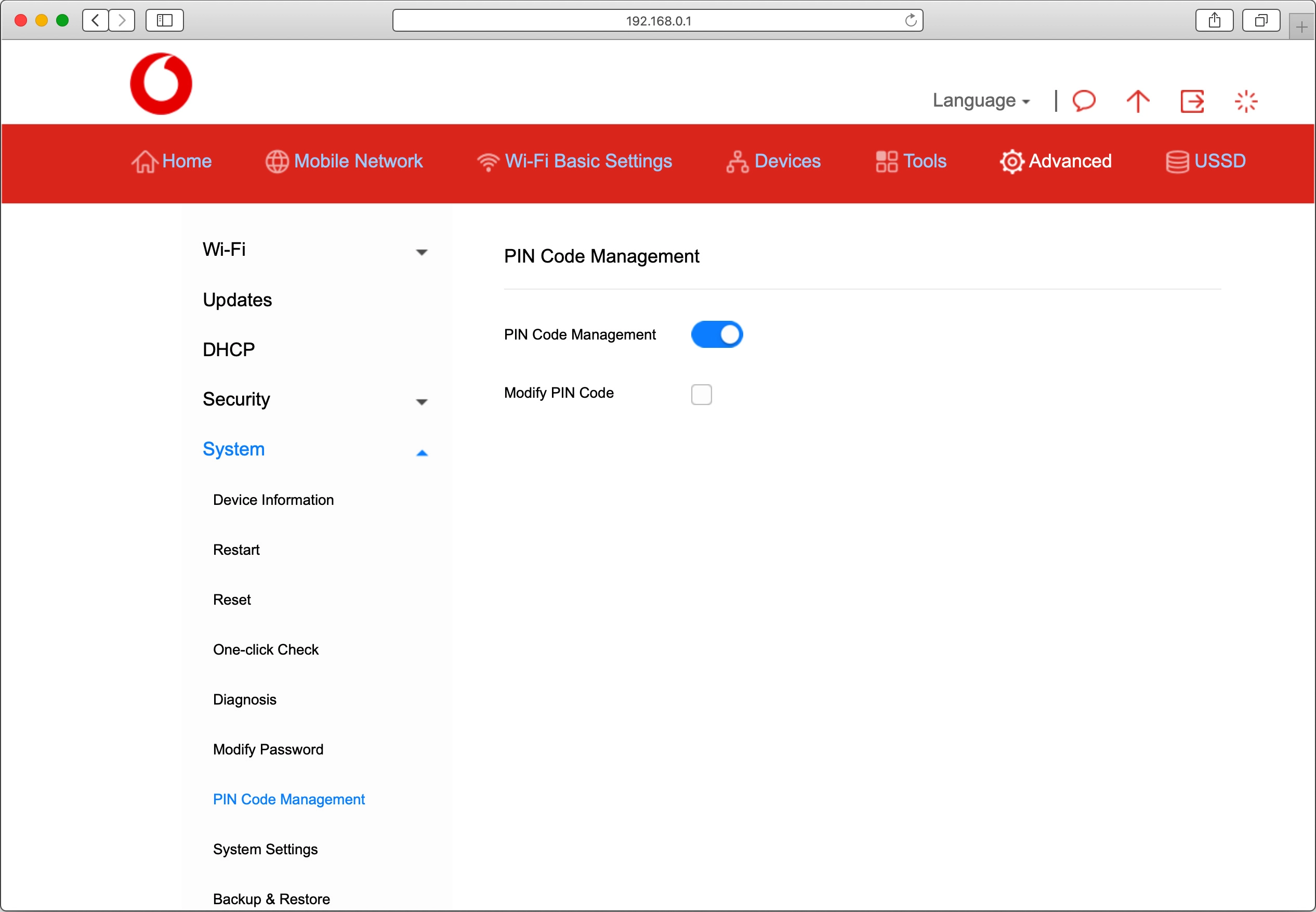 Click PIN Code Management.